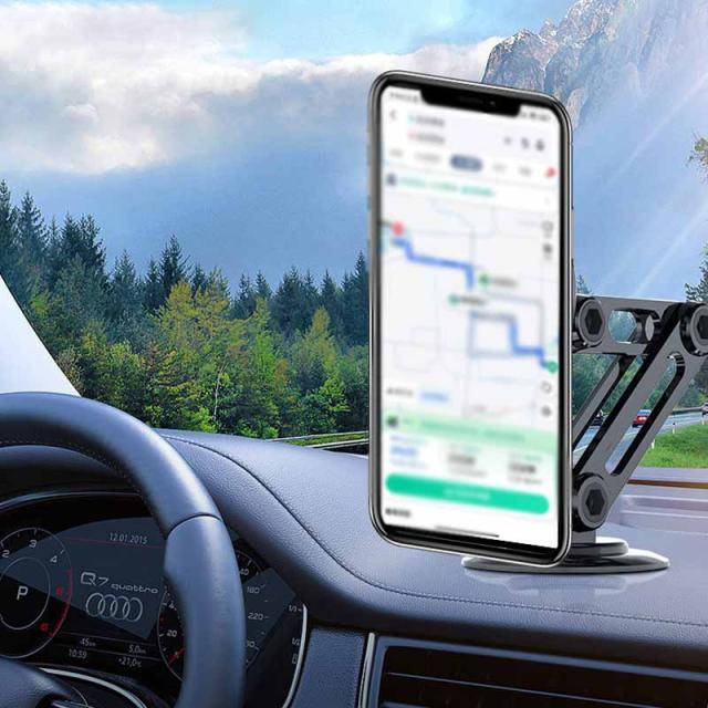 ・車載スマホホルダーの伸縮、折り畳み、360度回転可能の特徴を利用し、スタンドが見やすいところに調節可能。