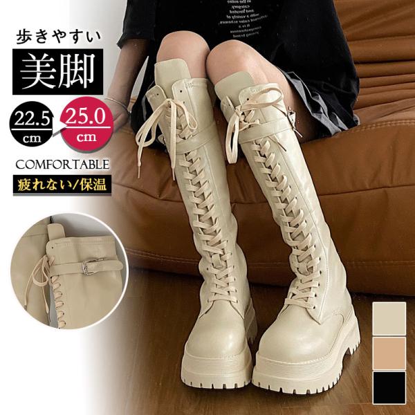 レースアップ 厚底 ロングブーツ 韓国 レディース ジョッキーブーツ 秋冬 美脚ブーツ 歩きやすい おしゃれ ロングブーツ トレンド オルチャン