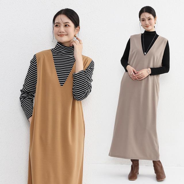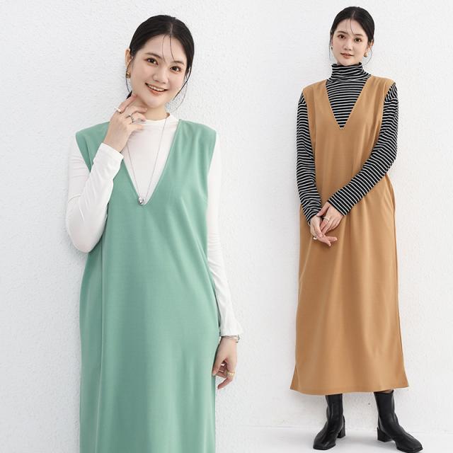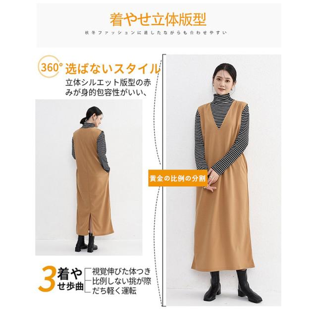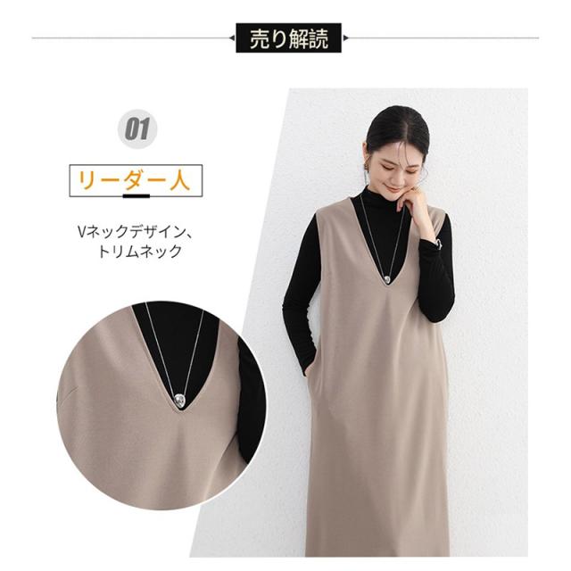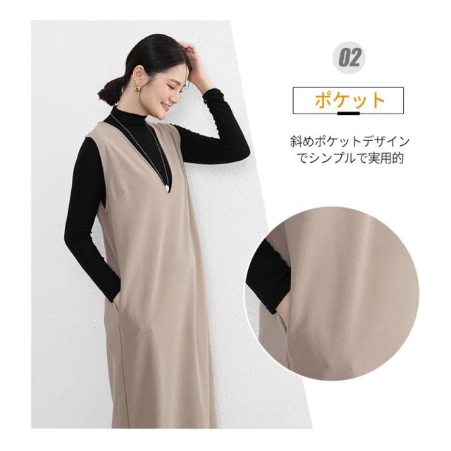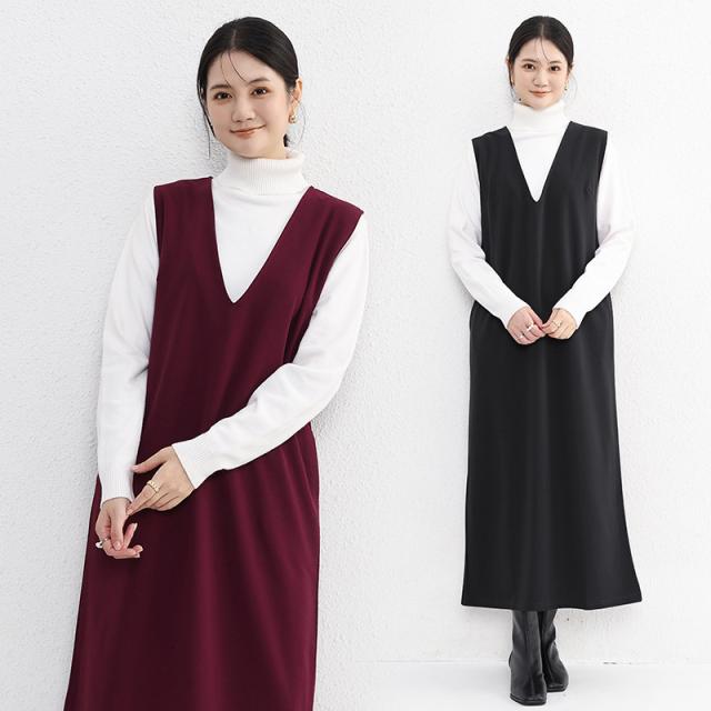 2点300円OFF! ワンピース ジャンパースカート vネック 大人 秋 冬 秋冬 レディース きれいめ おしゃれ オフィスカジュアル セットアップ ジャンスカ 膝丈