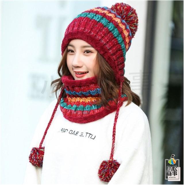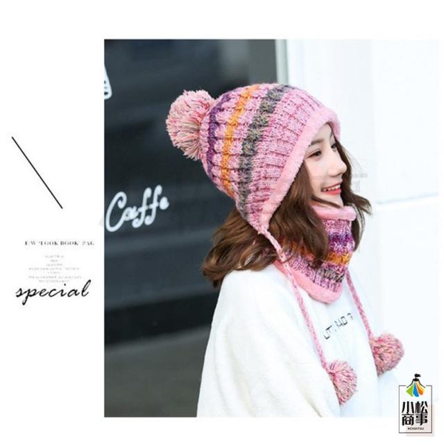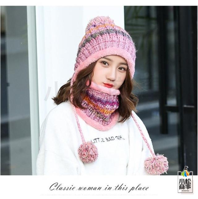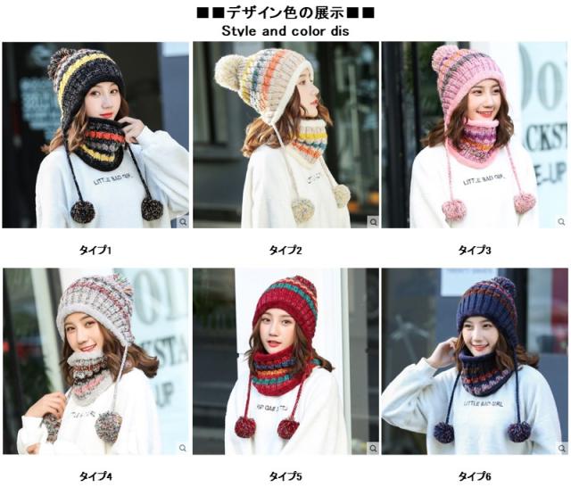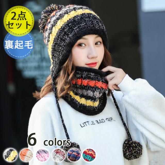 2点セット ニット帽 ネックウォーマー レディース ニット 帽子 ポンポン ニット帽子 マフラー 自転車 裏起毛 男女兼用 スキー スノーボード