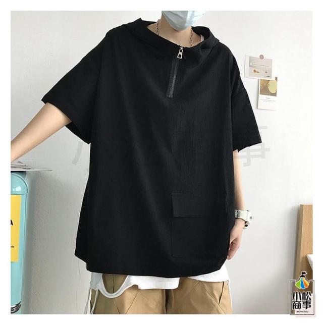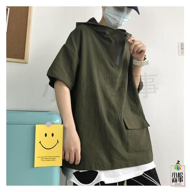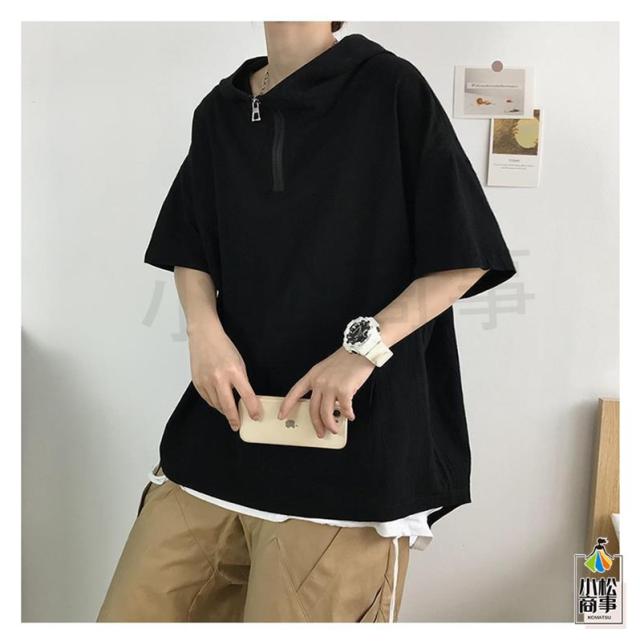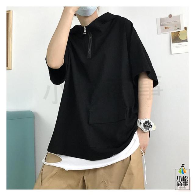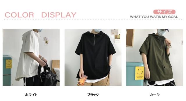 送料無料 パーカー メンズ フード付き 半袖 半袖パーカー プルオーバ シンプル ゆったり カジュアル ジップ ポケット レイヤード 軽い 春夏着服 通学 夏服