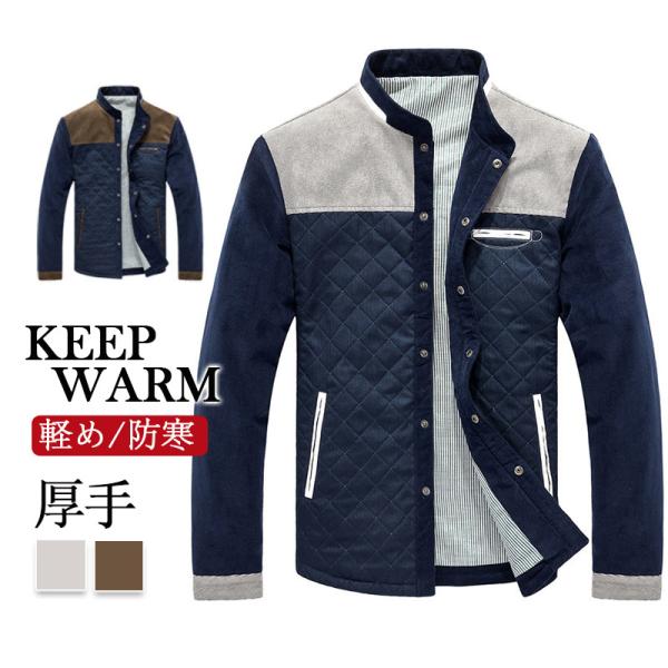 ジャンパー メンズ 大きいサイズ 中綿 冬 おしゃれ 異素材切り替え ブルゾン 秋冬ジャケット ネイビー ブラック コート ナイロン