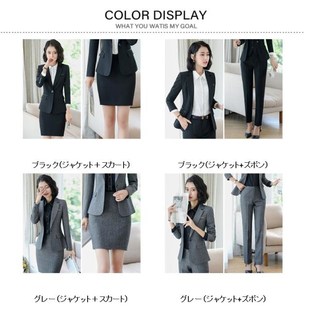 カラー:/ブラック(ジャケット+スカート)/ブラック(ジャケット+ズボン)/グレー(ジャケット+スカート)/グレー(ジャケット+ズボン)