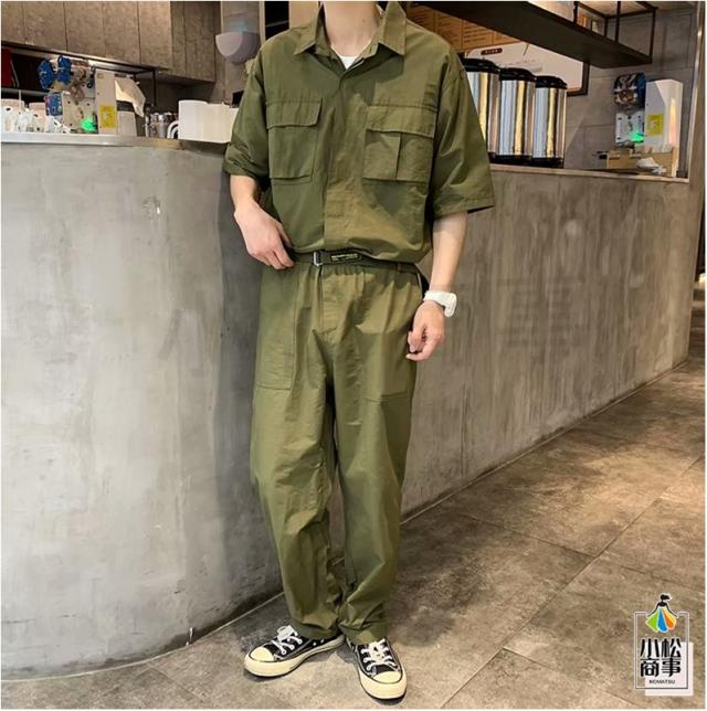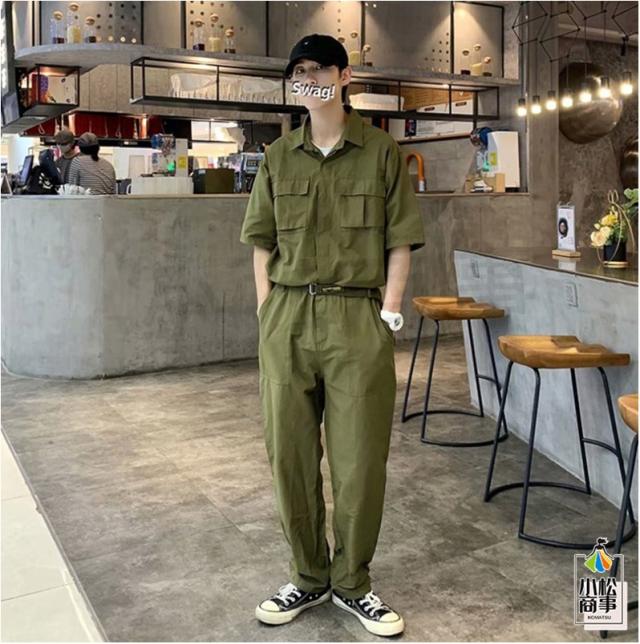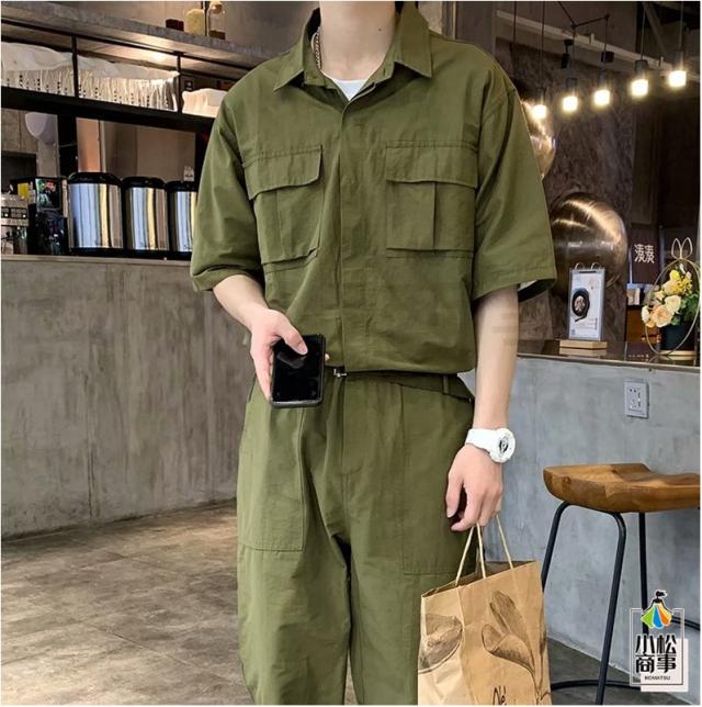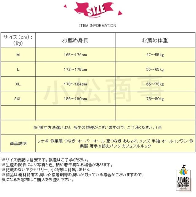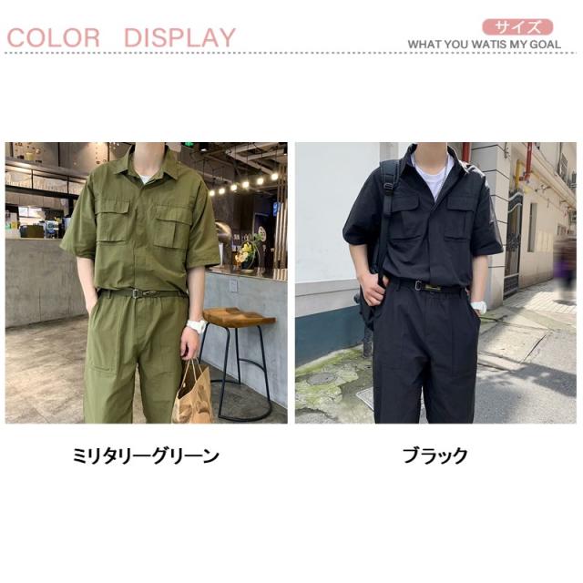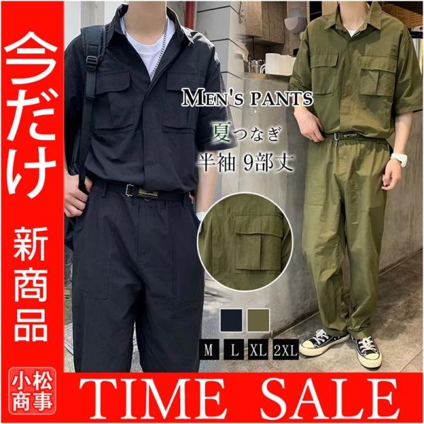 ツナギ 作業服 つなぎ オーバーオール 夏つなぎ おしゃれ メンズ 半袖 オールインワン 薄手 9部丈パンツ カジュアルルック