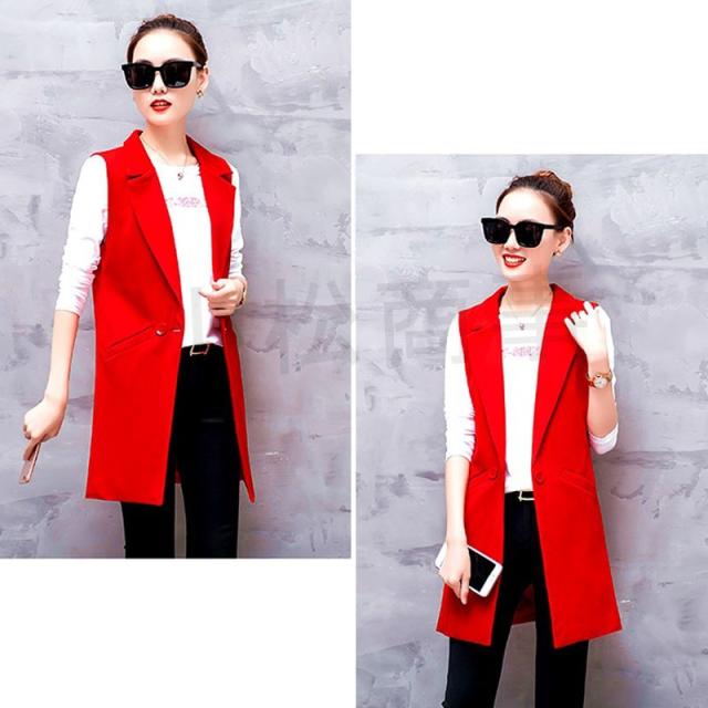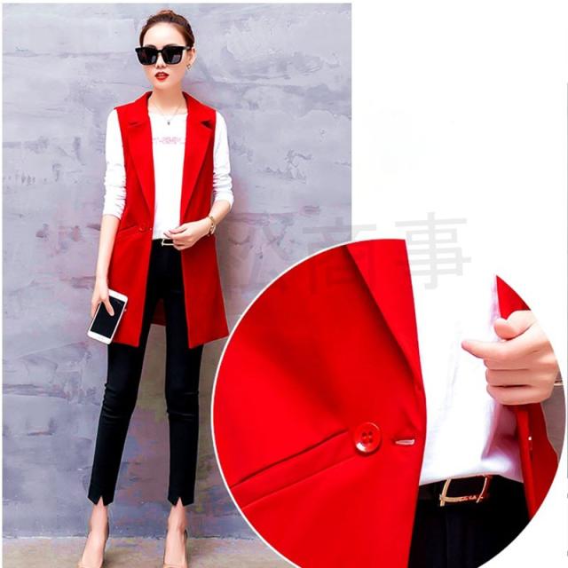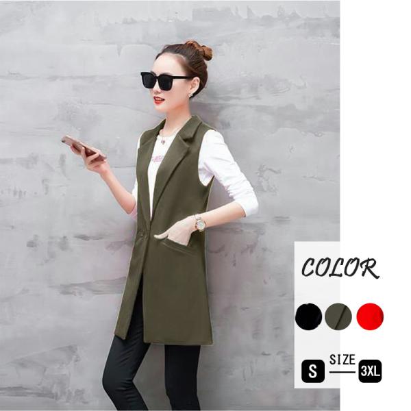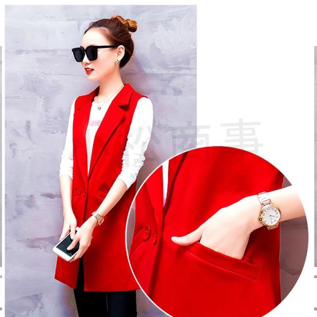 スーツベスト チョッキ ジレ レディース ロングベスト オフィス 通勤 無地 シンプル 春秋 V ネック ボタン ゆったり ピンク レッド 送料無料