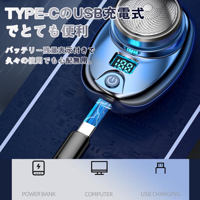 髭剃り 電気シェーバー メンズ ブラシ USB充電 携帯用 コンパクト ミニ 男性 水洗い 防水 軽量 持ち運び 出張 旅行 回転式 TYPE-C