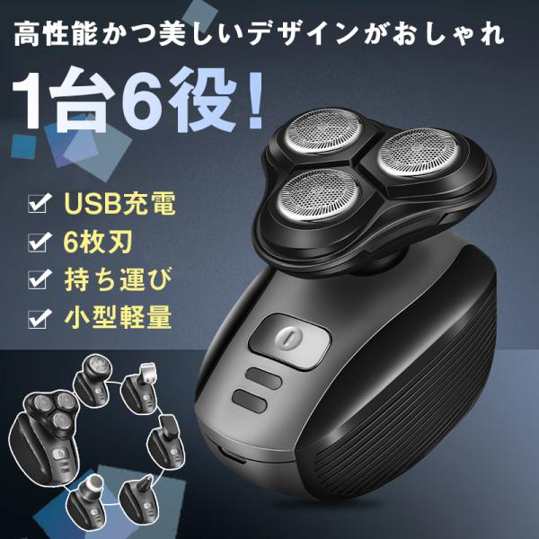 髭剃り 電気シェーバー メンズ USB充電 6枚刃 携帯用 小型 コンパクト ミニ 男性用 軽量 持ち運び 出張 旅行 回転式 掃除用ブラシ