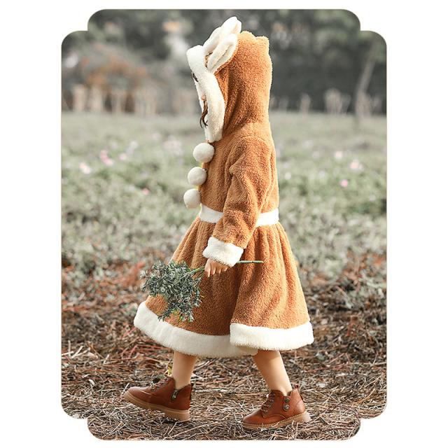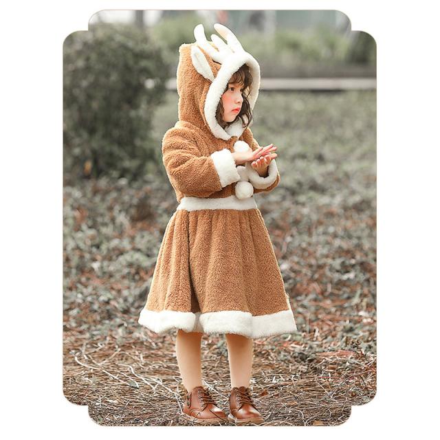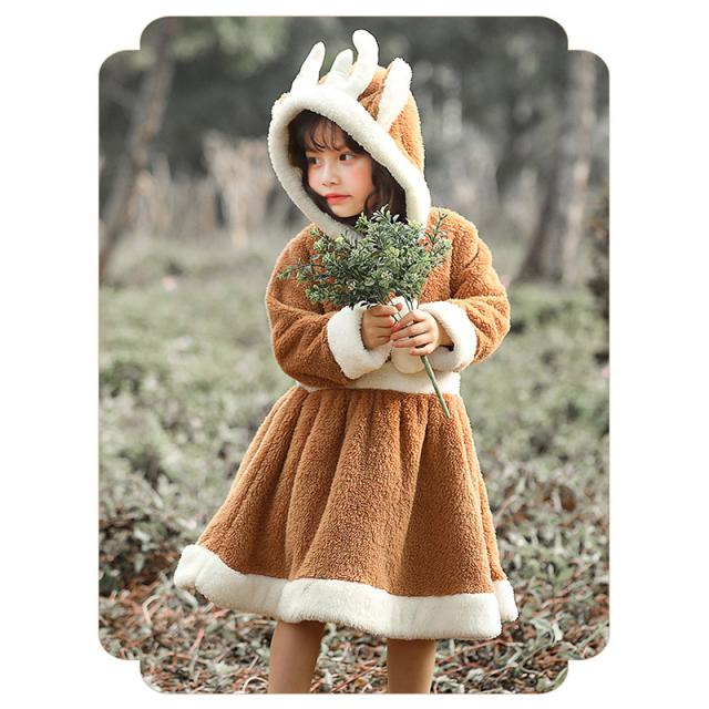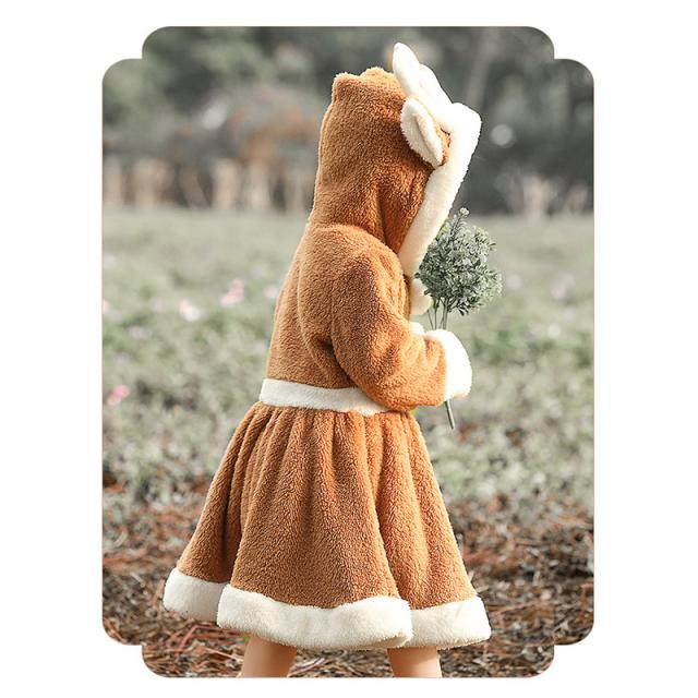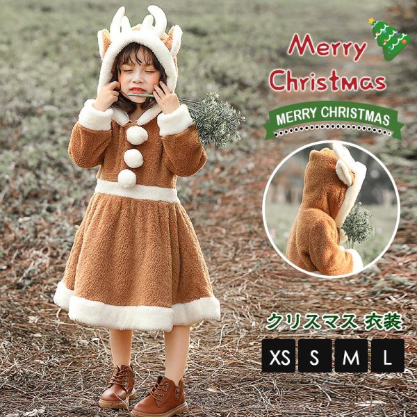 クリスマス衣装 トナカイ ワンピース 着ぐるみ かわいいフード付 披露会 レディース 可愛い キッズ コスチューム もこもこ サンタクロース服