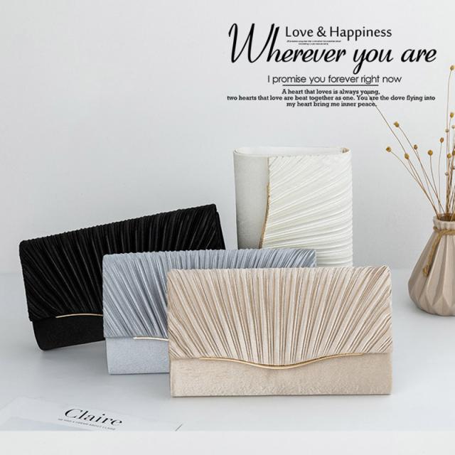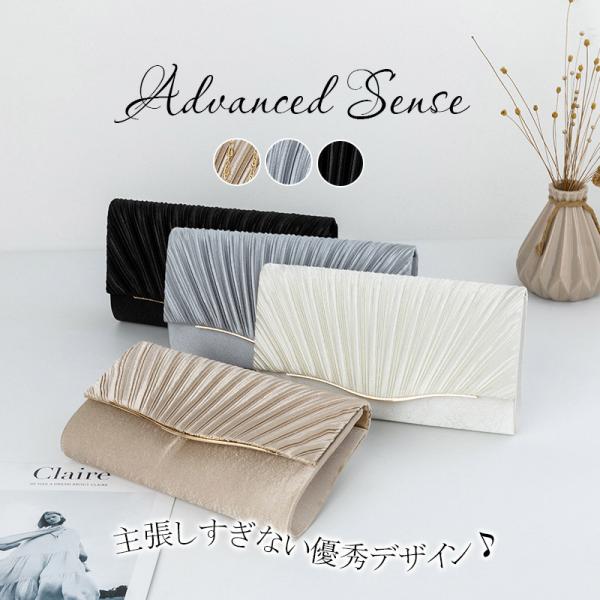 パーティーバッグ クラッチバッグ 結婚式 バッグ レディース 3way プリーツサテン パーティバッグ クラッチバッグ