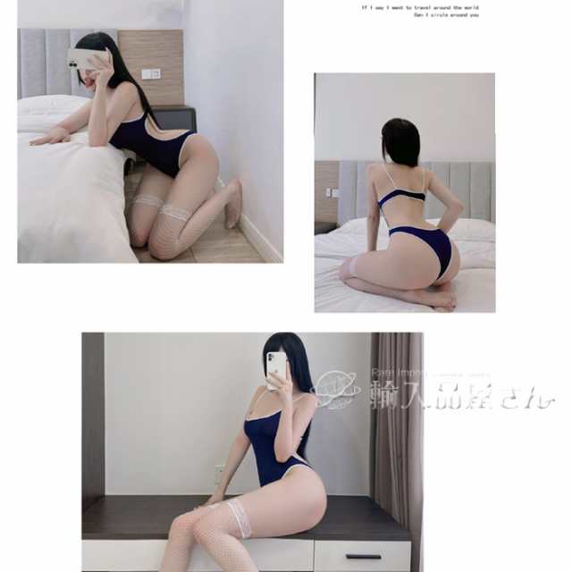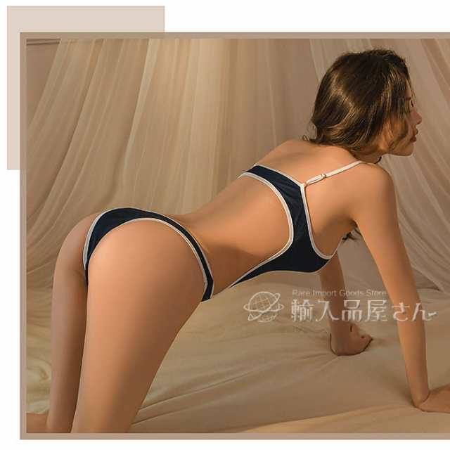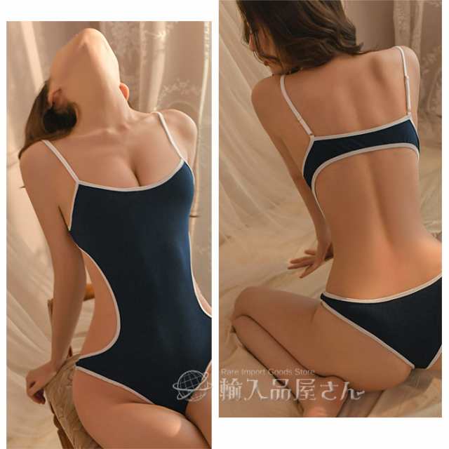セクシー 水着 コスプレ スクール水着 背中 開き セパレート風 スク水 コスチューム レディース ハイレグ レオタード 競泳水着 光沢 極薄 ネイビー 紺 大きいサイズ