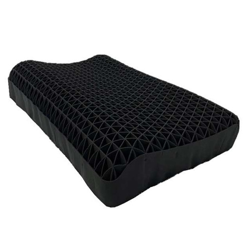 卵を手で押し付けても割れないほど圧力を分散する、きめ細かい三角格子構造を採用。三角の格子形は点の数が多く、頭をしっかり支える為、枕に最適な構造です。