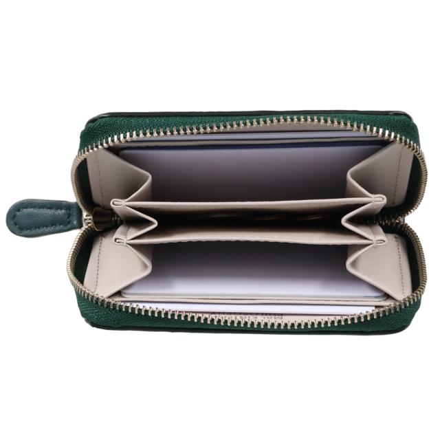 表革にはセミアニリン仕上げのモンゴル産シープを使用しており、ふんわりとしたタッチで滑らかな質感が特徴です。ブランドロゴを凸に浮き出し加工した版押しは、版を押した後に樹脂を入れ固めているので安心してご使用いただけます。小銭入れ3室に分かれているので、小銭を分けて収納することができます。さらにカード室が3室ついています。