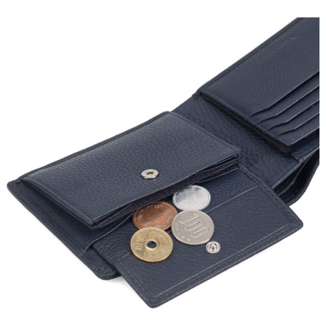 ナチュラルなシボ感が魅力のシュリンクレザーを使用。革らしい風合いを感じることができ、使い込んでいくほどに艶が増し、エイジングを楽しむことができます。シンプルな二つ折り財布ながら、カード段にマチを付けて、カード段を増やすことで、カードを8枚収納することができます。マチが付いていることで、カードが取り出しやすくなっています。