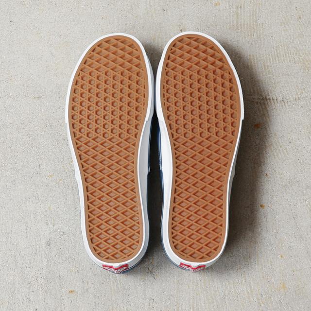 1966年にリリースされたブランドの原点である「AUTHENTIC」。その名の通り極めてシンプルで、ミニマルなデザインが特徴です。シンプルだからこそ甲やヒールにあしらわれたダブルステッチがアクセントになり、さりげなくサイドに配置されたVANSのロゴ入りタグもポイント。また、フラットなソールにはVANSの特徴の一つであるワッフルソールが備えられ、他にはない高いグリップ力を発揮します。アッパー部分はローテクスニーカーの王道であるキャンバスを採用。装飾と言えるものがほとんどなく、アメリカンテイストを感じるデザインは広く支持されています。