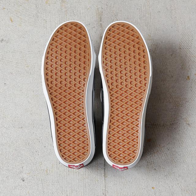 1978年にリリースされ、ハイカットスニーカー革命を牽引した「SK8-HI」。通称「ハイトップ」や「スケハイ」とも呼ばれ、いわゆる“スケシュー”の代名詞的アイテム。足首を保護するために伸びたアッパーには、内側に綿を詰め込んでおり、柔らかいフィット感を実現しています。アッパーサイドにはVANSのアイコニックなディテールである、レザーパーツで描かれた波を連想させるなめらかな曲線「ジャズ・ストライプ(jazz stripe)」。高いグリップ力を発揮するフラットなソールには、VANSの特徴の一つであるワッフルソールが備えられています。アッパーにはスエード生地、サイドにはキャンバス生地の異なる素材を使用。シンプルなデザインに異素材の組み合わせや、ダブルステッチとシングルステッチの使い分けがより映える仕上がりになっています。
