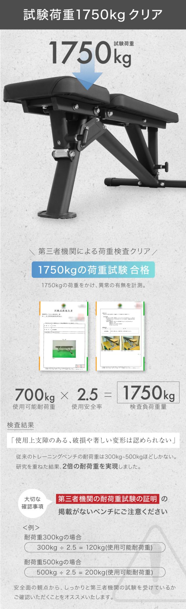 試験荷重1750kgクリア(耐荷重700kg)のインクラインベンチ