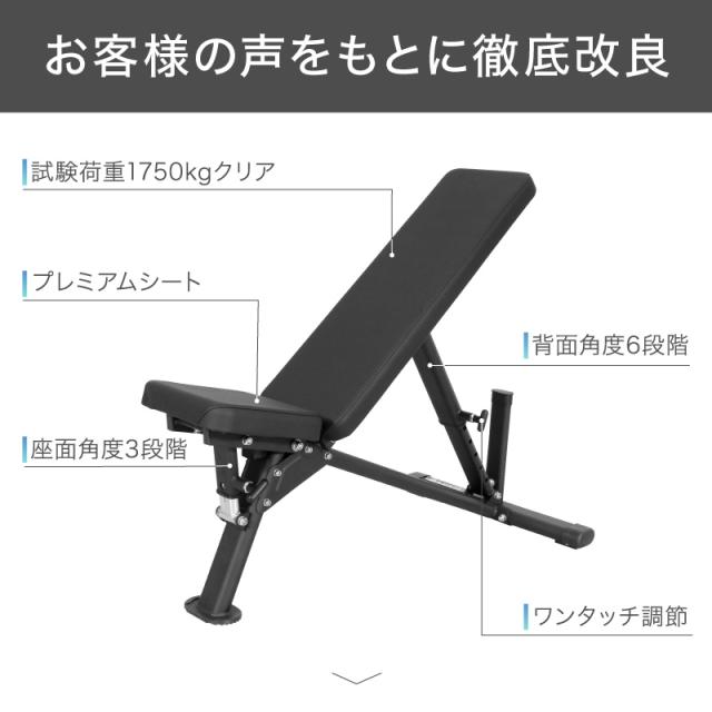 【仕様】 公式競技サイズ ロングシート 角度不連動 背面シート6段階 座面シート3段階 合計18段階調節 試験荷重1750kgクリア 耐荷重700kg インクライン フラット アジャスタブル 可変式 ベンチ 台形座面 シート間の隙間を最小限 足を置きやすい I型フレーム オーバル支柱 3点支持 堅牢 超頑丈 ワンタッチ 極太パイプ 簡単操作