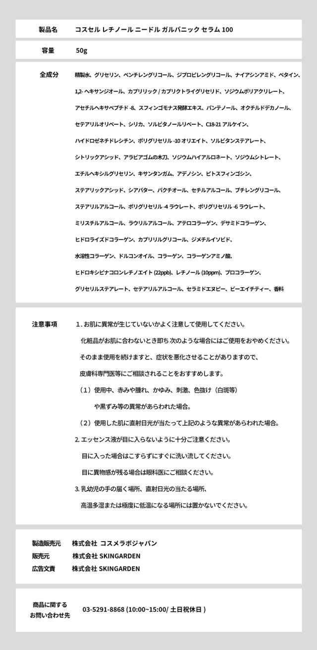 COSCELL [国内発送] 塗るデバイス レチノールニードルガルバニックセラム100 50g スローエイジング 韓国コスメ