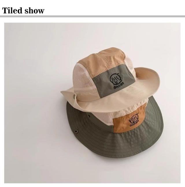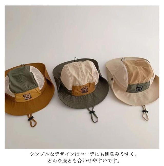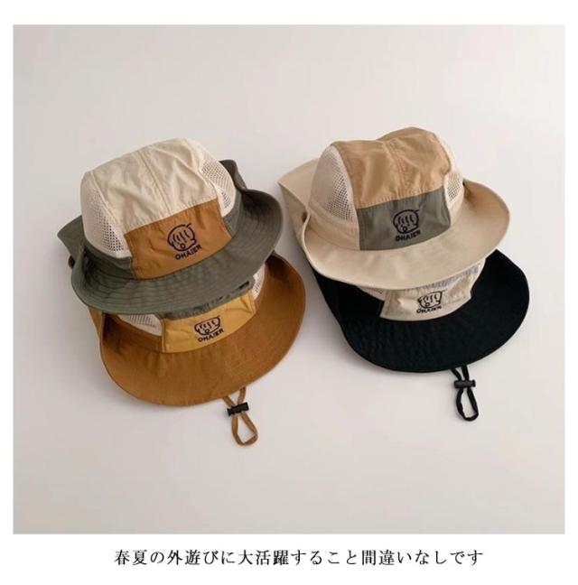 帽子 猛暑対策 男女兼用 サファリハット キッズ 女の子 夏 メッシュ 運動会 つば広 あご紐 サファリハット アドベンチャーハット 日よけ ハット 子供用 配色 大きいサイズ アウトドア キャンプ 紫外線カット レインハット 海水浴 UVカット