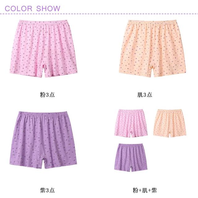 | 締め付けない女性用ボクサーショーツ3枚セット! お腹まですっぽりの深ばき丈、優しい肌触りの綿生地で吸汗性、通気性があり。 ウエストはゴムでお腹を締めつけにくく、裾広がりで履きやすく、脱ぎやすい。 かわいい花柄です。 | |