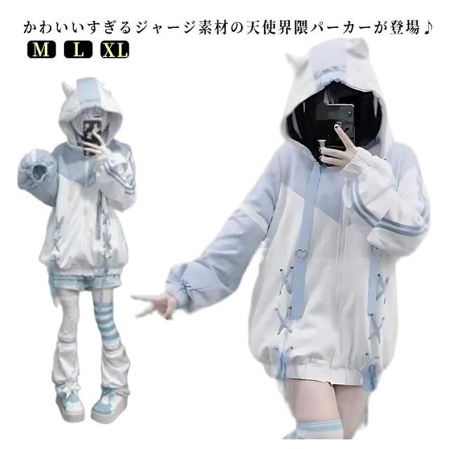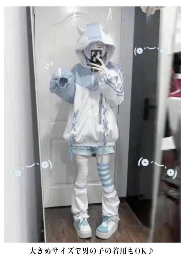 メンズ 水色 ジャージ パーカー 原宿 地雷系 レディース ブルゾン サブカル 水色パーカー 水色パーカー ユニックセス 天使界隈 切り替え 水色界隈 原宿系 かわいい 量産型 トップス 病み ジャージジャケット 天使 個性的 大きいサイズ ブルー サブカル 仮装