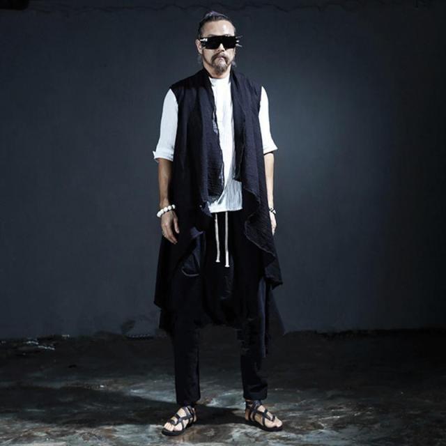 ノースリーブ ジャケット モード系 ロング ベスト トップス プリーツ pLegLad 個性的 黒 大人 ゆったり ストリート系 かわいい 韓国ファッション