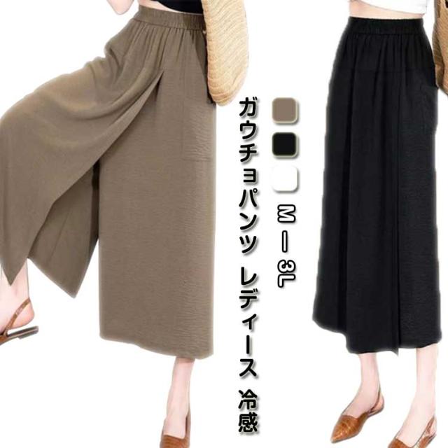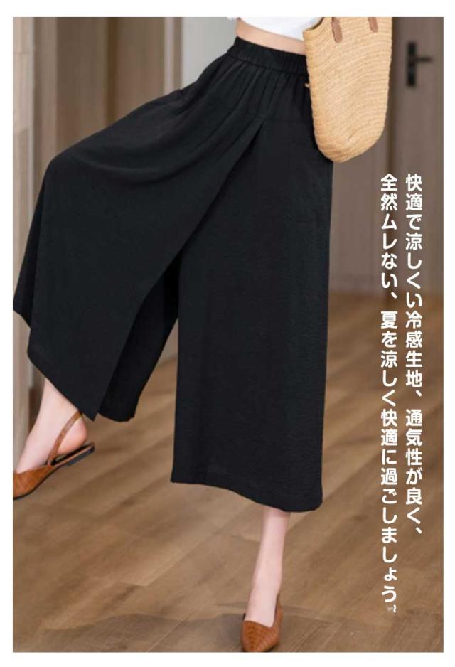 ガウチョパンツ 肌触り ガウチョパンツ 夏 スカートパンツ 2in1 キュロット 冷感アイスシルクパンツ 接触冷感 レディース 吸汗速乾 ハイウエスト ひんやり 大きい 無地 薄手 通気 柔らかくて快適