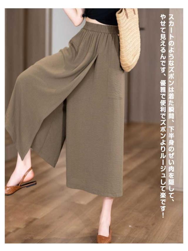 | スカートのようなズボンは着た瞬間、下半身のぜい肉を隠して、やせて見えるんです、優雅で便利でズボンよりルージュして楽です! 快適で涼しくい冷感生地、通気性が良く、全然ムレない、夏を涼しく快適に過ごしましょう~ 痩せ見え、体型を美しく演出する動きやすく、快適な履き心地を実現。 通気性拔群、フルストレッチ、コーデに合わせやすいアイテム、体型をカバーし、コーデに合わせやすい。 | |