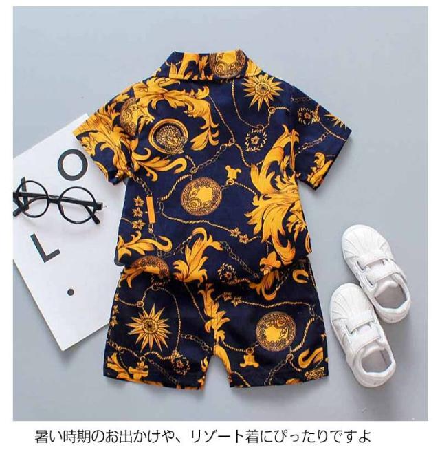 ショートパンツ 夏 キッズ服 アロハシャツ セットアップ 子供服 上下セット お揃い 女の子 男の子 半袖 カジュアルセットアップ 100 セットアップ 80 90 幼児 110 120