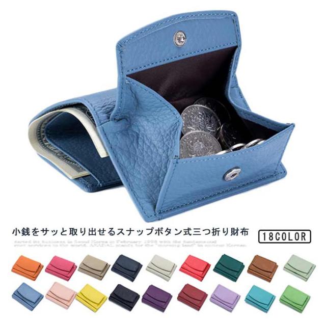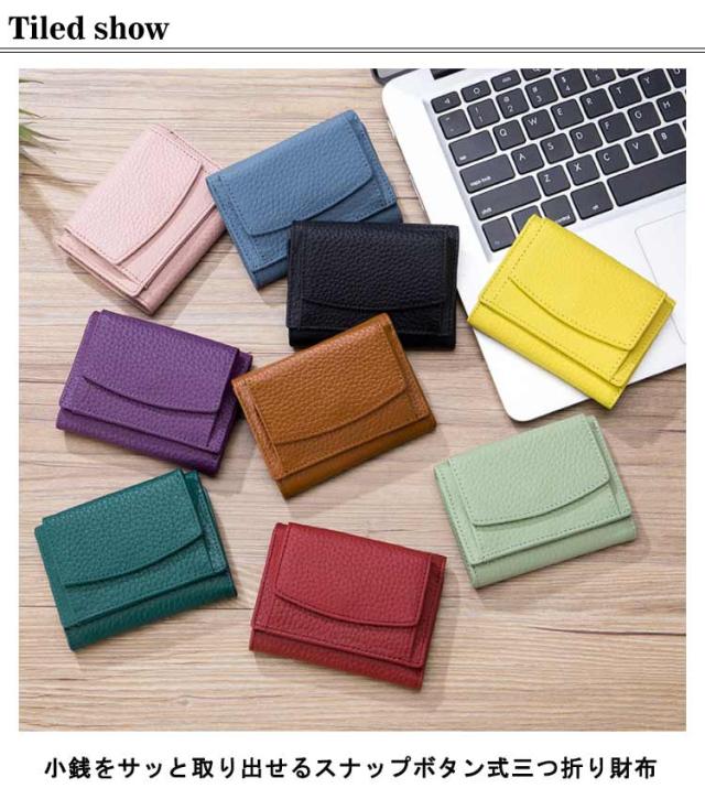 牛革 ミニ財布 財布 三つ折り財布 カードたくさん 使いやすい 小銭入れ ミニ財布 メンズ レディース おしゃれ 薄型 ミニサイフ ミニウォレット 無地 ボックス型 コンパクト スナップボタン コインケース シンプル ギフト プレゼント