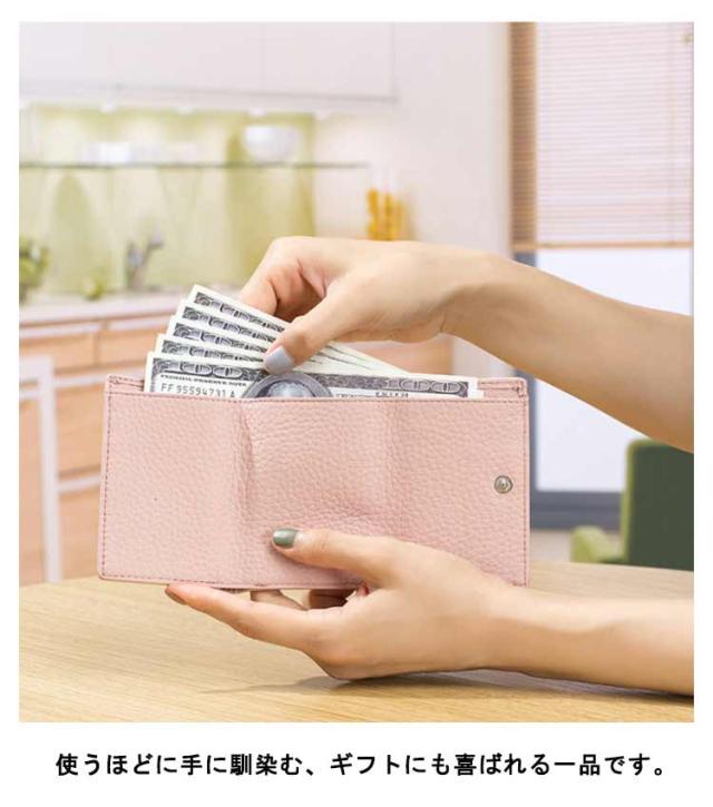 | 小銭をサッと取り出せるスナップボタン式三つ折り財布 シボ感のある表面は柔らかでナチュラルな印象。 人情報を盗んで悪用するなどの犯罪から守るスキミング防止機能付き。 三つ折りを開くと仕切り付き札入れが1カ所、カードポケットが6カ所もあるので必要なものをスッキリと収納できます。 使うほどに手に馴染む、ギフトにも喜ばれる一品です。 | |