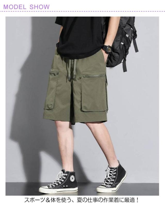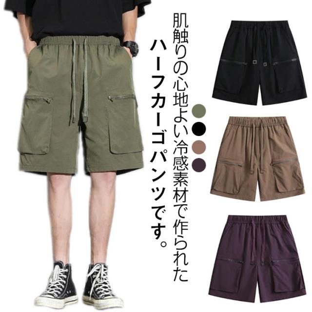 冷感 メンズ ハーフ スポーツ ショートパンツ カーゴパンツ 接触冷感 フロントポケット パンツ ハーフパンツ 膝丈 短め 冷感 短パン ゆったり M L XL 2XL 3XL