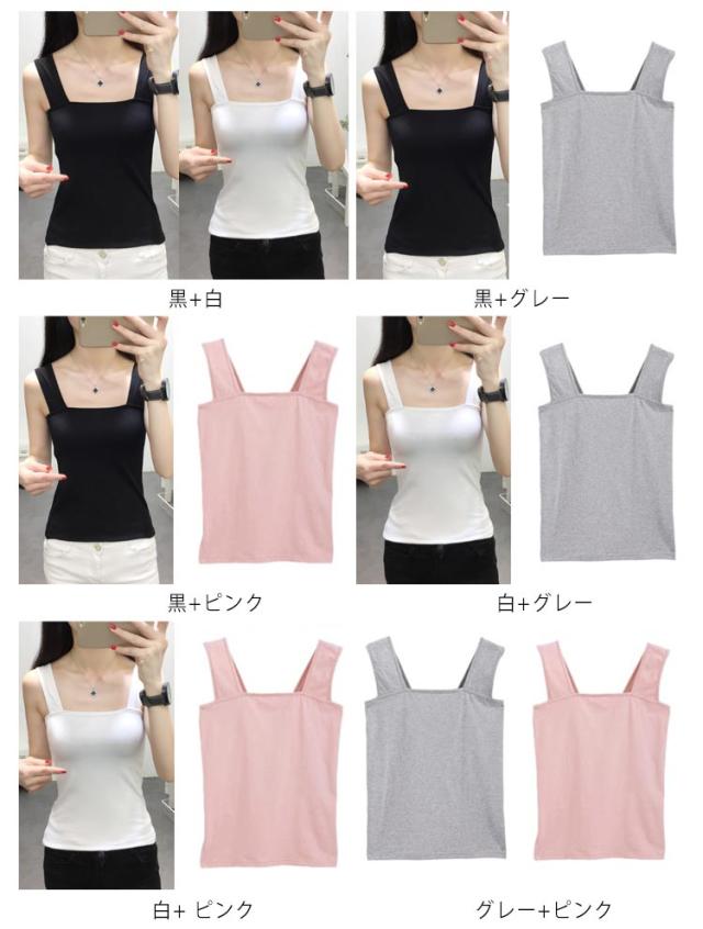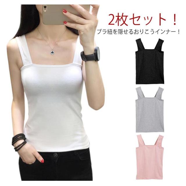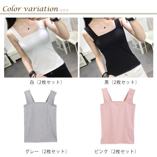 2枚セット タンクトップ レディース ブラ紐隠しインナー インナー チラ見え 防止 ブラ紐隠し タンクトップ tシャツ レイヤード重ね着 タンク キャミソール 胸元 幅広ストラップ 脇見えず 部屋着 伸縮 通気 吸汗 薄手 春 夏