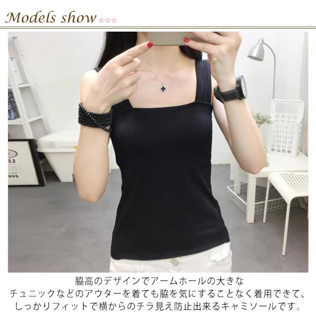 | 2枚セット! ブラ紐を隠せるおりこうインナー! 脇高のデザインでアームホールの大きなチュニックなどのアウターを着ても脇を気にすることなく着用できて、しっかりフィットで横からのチラ見え防止出来るキャミソールです。 柔らかく伸びのいい素材を使っているので、胸元や脇下にピタッと密着。 肩部分が幅広で、ブラ紐も隠してくれるので、シアートップスとの重ね着にもぴったりです。 スクエアネックのすっきりとした胸元は、Vネックのワンピースや、パーカ合わせにも好相性。薄着シーズンの着こなしをもっと楽しむために、春夏中はずっと手放せなくなりそうです。 | |