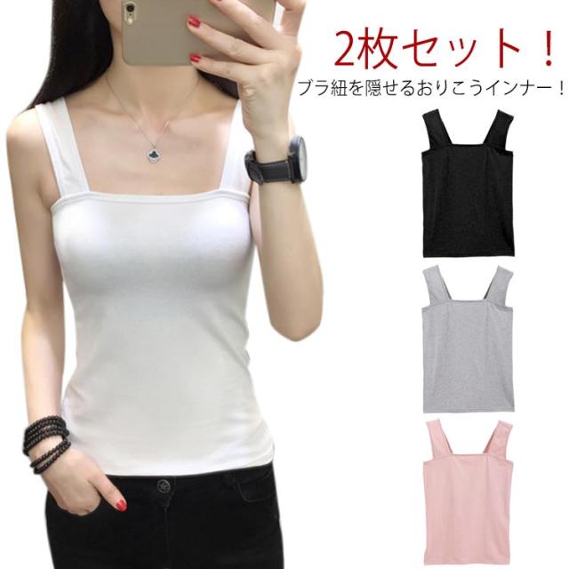 2枚セット タンクトップ レディース ブラ紐隠しインナー インナー チラ見え 防止 ブラ紐隠し タンクトップ tシャツ レイヤード重ね着 タンク キャミソール 胸元 幅広ストラップ 脇見えず 部屋着 伸縮 通気 吸汗 薄手 春 夏