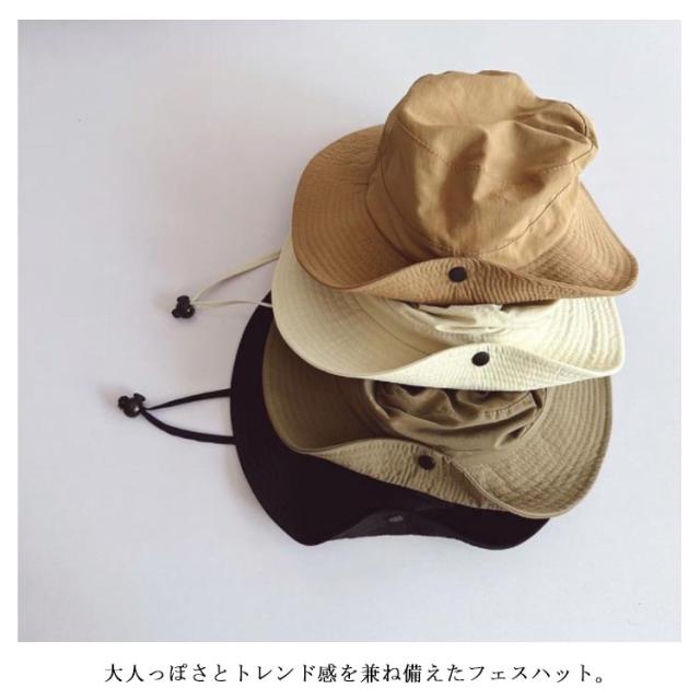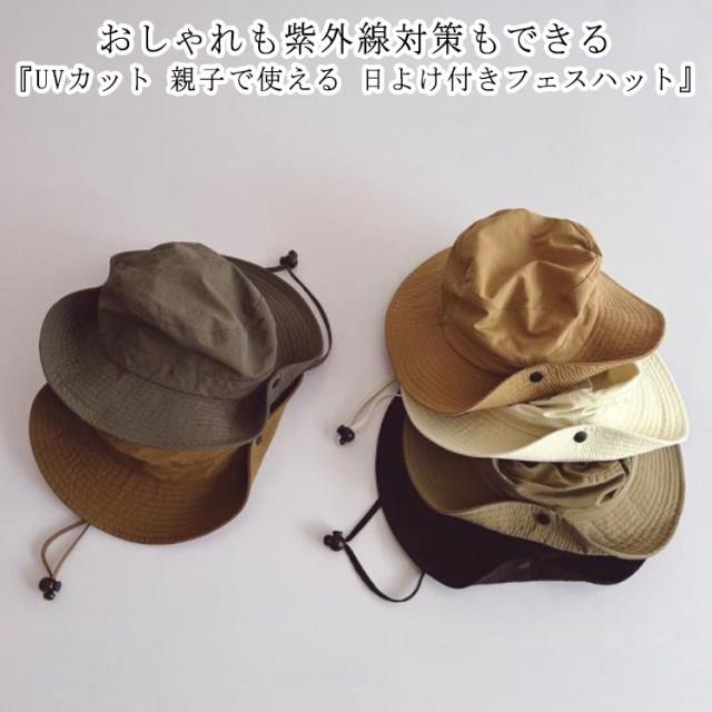 | おしゃれも紫外線対策もできる『UVカット 親子で使える 日よけ付きフェスハット』 大人っぽさとトレンド感を兼ね備えたフェスハット。 収納可能な日よけガード付きなので暑い日も快適な被り心地。 毎日の紫外線からお子さまの肌を守れるように、遮蔽率90%以上の素材を使用したのもうれしいポイント。 親子お揃いでの着用も楽しめるよう、58までサイズをご用意しました。 レジャーからお出かけまで、幅広いシーンで活躍するアイテムです | |