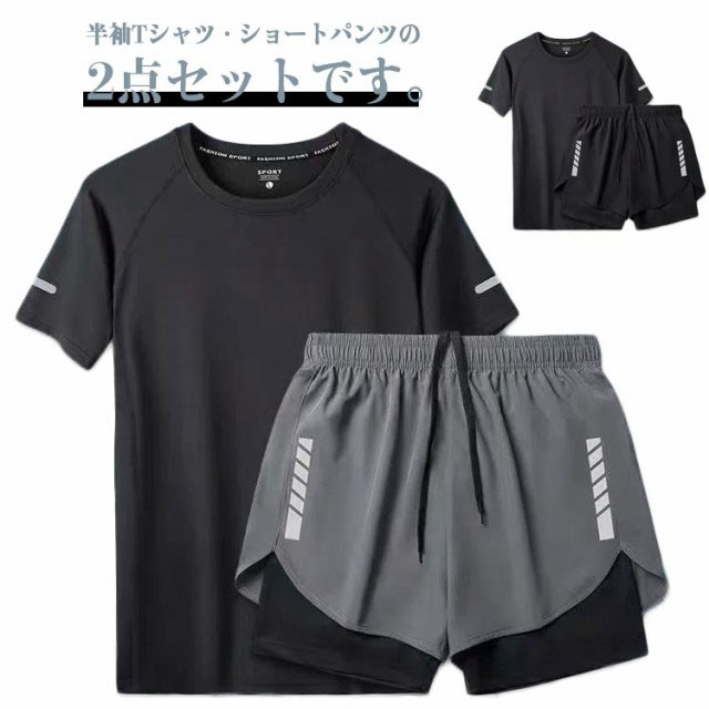 男性用 メンズ 上下セット ストレッチ性 ラッシュガード 水着 ハーフパンツ 大きいサイズ インナーパンツ付き 水着 海パン スポーツ ジム 海遊び 半袖Tシャツ 大きいサイズ セットアップ 吸汗速乾 通気性 水陸両用