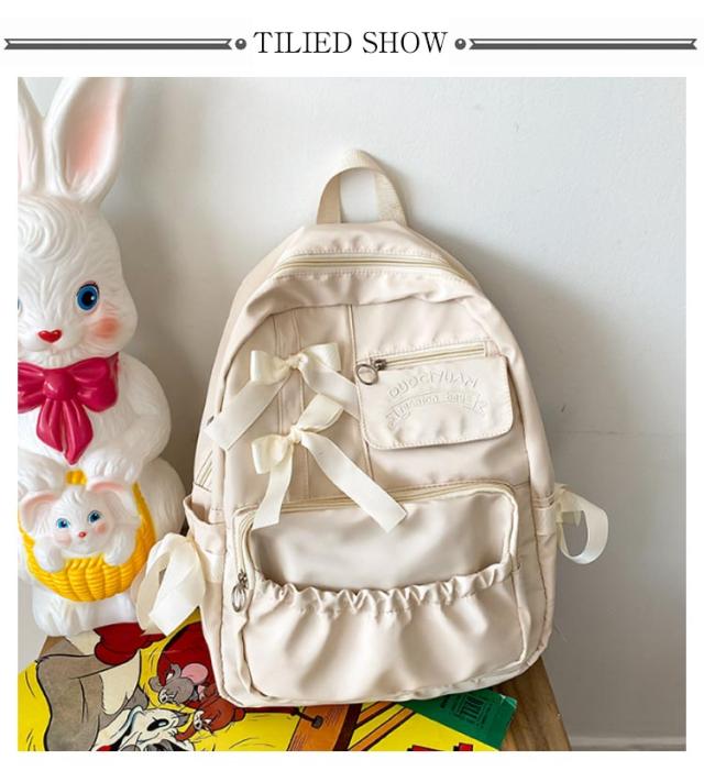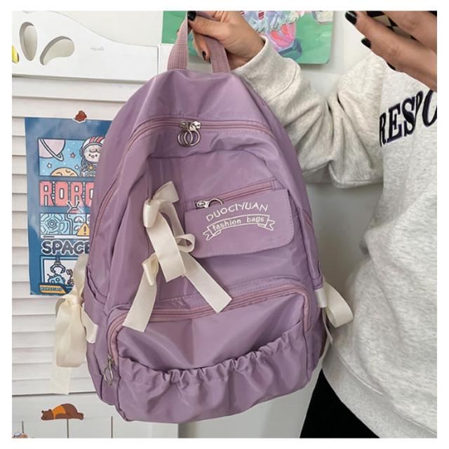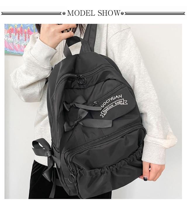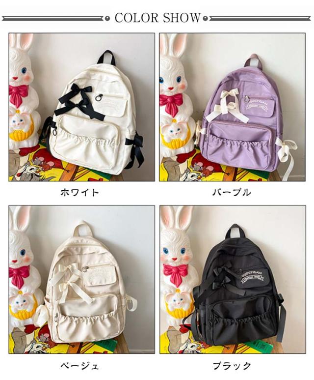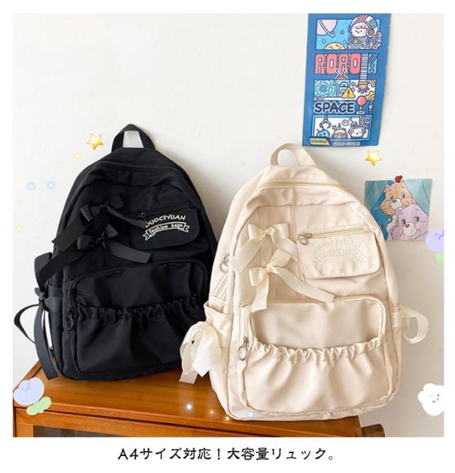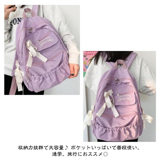 | 【大容量】【オシャレで可愛い】【4color】 大きなリボンが可愛い!実用性も揃ったナイロンリュックサック、 収納力抜群で大容量♪ ポケットいっぱいで普段使い、通学、旅行におススメ◎ A4サイズ対応!大容量リュック。 A4サイズの書類、ノートPCやタブレットなども収納OK! | |