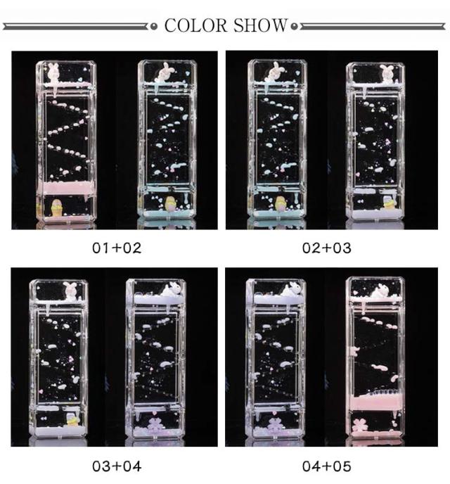 | 【2個セット】【全6種】【オイル時計】 いつまでも飽きずに見ていられます! ついつい見入ってしまう、不思議でキレイな砂時計のような、オイルタイマーです。 重力は、色の付いた液滴がスローモーション空間でゆっくりとリズミカルに移動するように導きます。自宅やオフィスの机の装飾に最適です 癒しグッズ 或いはストレス解消用のおもちゃ/癒されるオイルタイマー / オイルモーション として使えます。エネルギーを使い果たしても、回転するだけでやり直します。 カラフルな油滴を落ちることで、思わず時間を忘れ、注意欠如・多動症の症状で困る子供・大人に対して、集中力を高めることができます。 誕生日プレゼント、クリスマス、友人、恋人への贈り物としてもオススメです。特に好奇心旺盛の子供にも喜ぶおもちゃでしょう。 | |