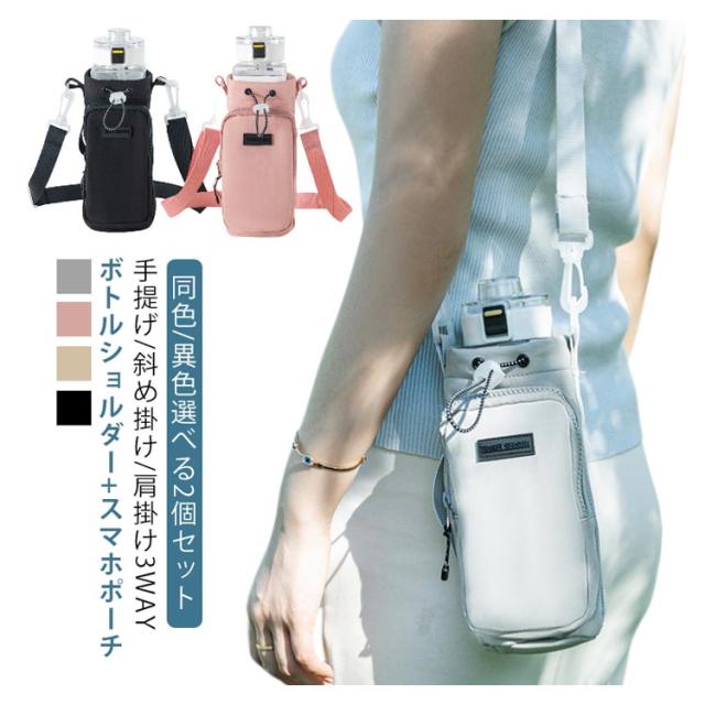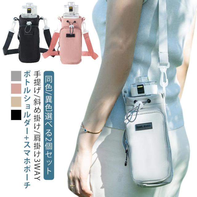 ナイロン 2個セット 水筒ケース スマホポーチ 撥水 ペットボトルホルダー 3way 斜め掛け スマホ 収納ポーチ 水筒ホルダー 水筒カバー 500ml-1000ml ストラップ タンブラー 長さ調節可能 ショルダー 持ち運び 持ち歩き