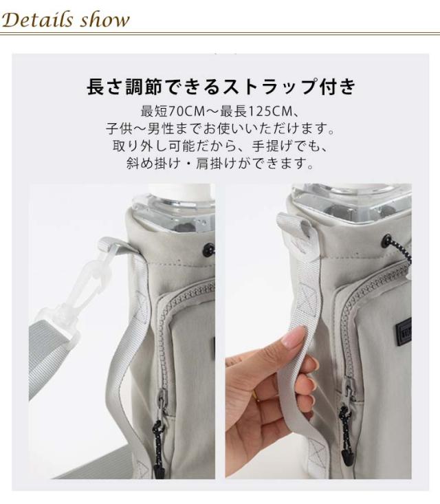 | 手提げ/斜め掛け/肩掛け3way ボトルショルダー+スマホポーチ 撥水生地 男女兼用 【同色/異色選べる2個セット】 <お勧めポイント> ■巾着式 直径9cmまでのボトルに対応できます。 巾着式だから、移動中に水筒の飛び出しことが防げます。 ■ファスナーポーチ付き スマホ・スマートキー・リップなど小物入れて、これ一つでおでかけ! 公園遊び・水遊び・犬のお散歩・送迎・お買い物…ちょっとしたお出かけの時に便利! ■長さ調節できるストラップ付き 最短70cm〜最長125cm、子供〜男性までお使いいただけます。 取り外し可能だから、手提げでも、斜め掛け・肩掛けができます。 ■撥水生地 撥水加工されており、汚れた場合はサッと拭いて清潔に◎ ■落ち着いたくすみカラー 男女兼用のシンプルカラー | |