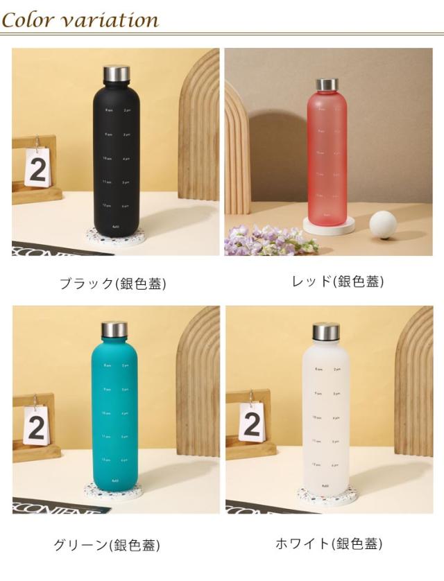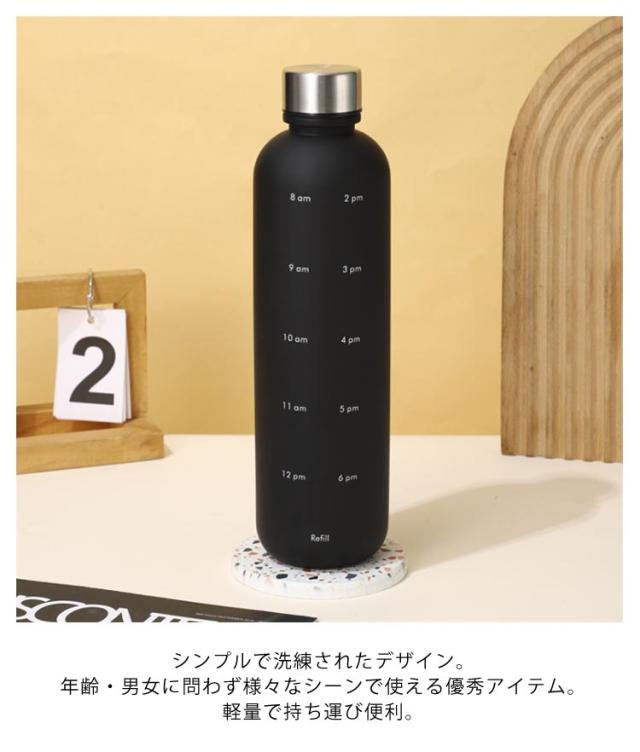 | タイムマーカー付き1Lウォーターボルト 【健康のため、1日2リットルの水を飲む】 インリアに映えるデザインとカラーバリエーションとシンプルなデザイン。 時間ごとの時間マーカーがあり、毎日の水の摂取量を増やすのに役立ちます。 容器の素材には衝撃に強く、耐熱耐冷性の高い、軽量素材を使用しており、持ち運び等に最適です。 自分用、ご家族、お友人、 同僚などへのギフトもおすすめです。 シンプルで洗練されたデザイン。 年齢・男女に問わず様々なシーンで使える優秀アイテム。 軽量で持ち運び便利。 | |