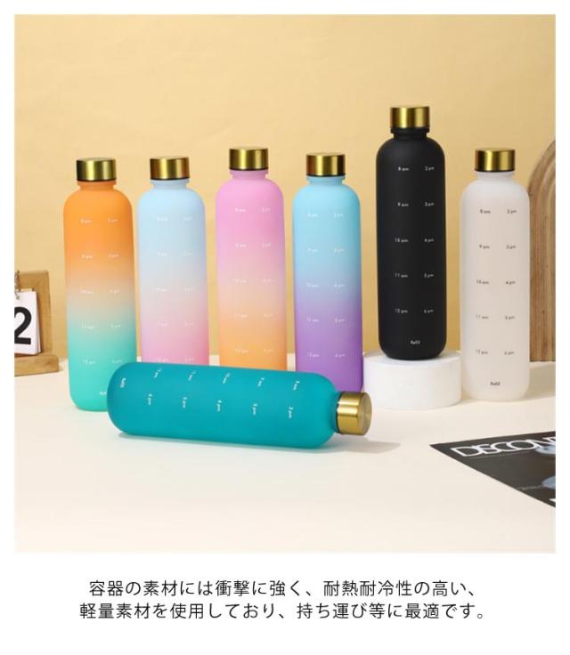 ボトル 1リットル水筒 1L 直飲み 目盛り付き 水筒 ウォーター 1000ml 1リットル ボトル グラデーション タイムマーカー つや消し 水分補給 ウォーターボトル 宅トレ トレーニング 携帯便利 漏れ防止 大容量 軽量 1リットル水筒 おしゃれ スポーツ