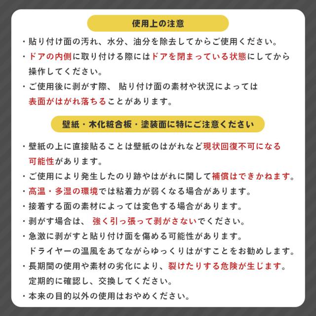 【壁紙・木化粧合板・塗装面に特にご注意ください】