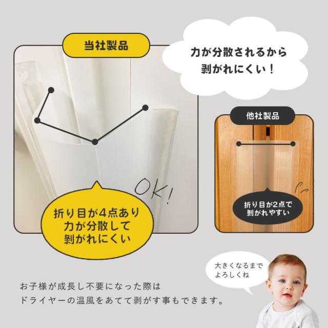 あけた状態で貼り付けをするとドアが閉まりにくくなります。