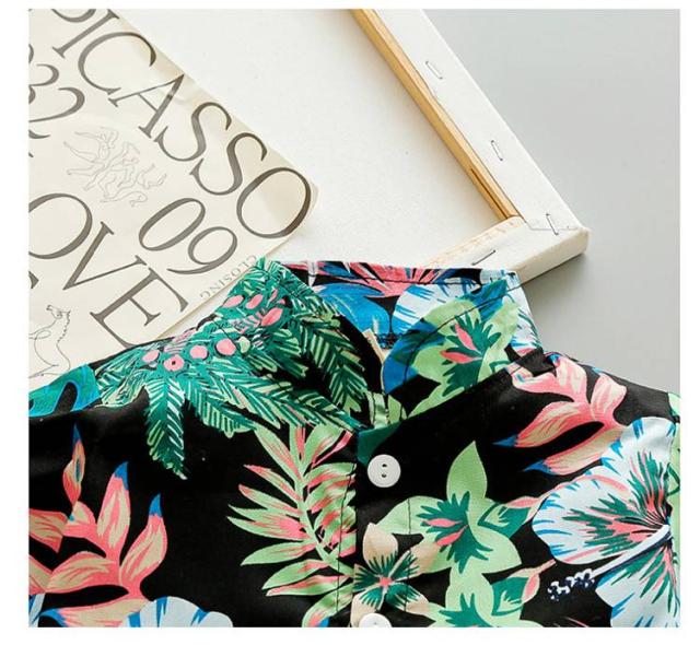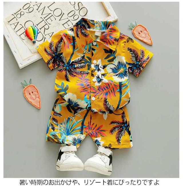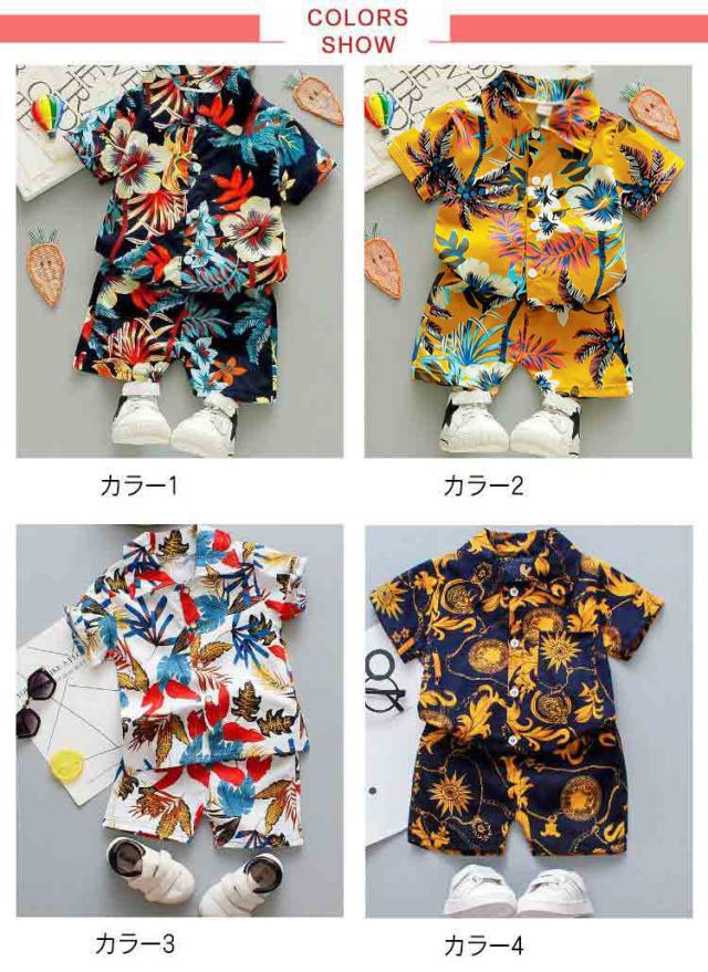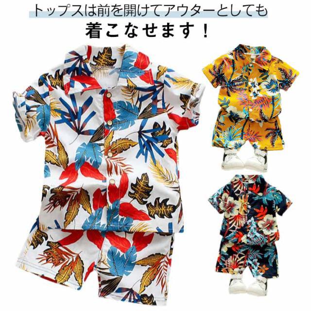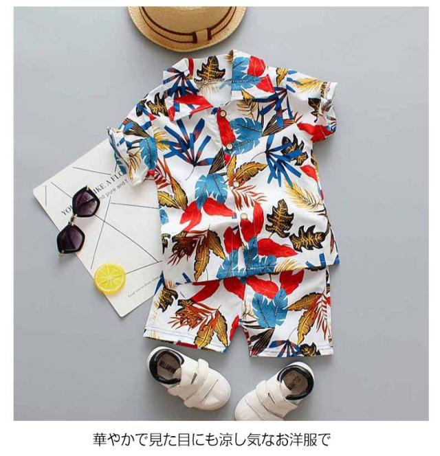 ベビー服 男の子 セットアップ ショートパンツ 半袖 カジュアル アロハシャツ 夏 アロハ 薄手 ひんやり ハワイ風 上下セット 子供服 90 キッズ服 ビーチウェア 80 120 100 110 ベビースーツ