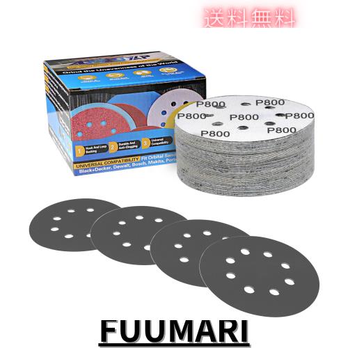 IROKCAKPT 耐水サンドペーパー 125mm #800番 サンダー ペーパー(50枚入)サンディングディスク 細目 サンディングペーパー 電動サンダー