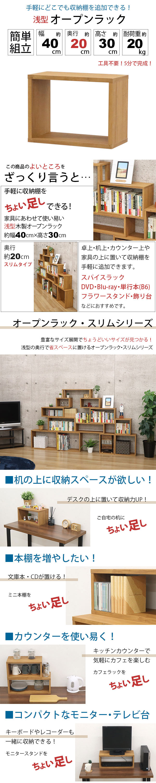 スリムな奥行20cm 幅40 高さ30 手軽にちょい足しラック(卓上・小物・書棚) 2個セット の説明