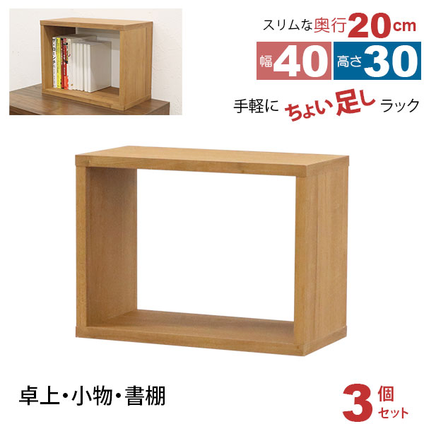 オープンラック 1段 40×30 3個セット 奥行20cm 収納 棚 薄型 おしゃれ 組み合わせ自由 幅40cm 高さ30cm 頑丈 耐荷重20kg 積み重ね 収納 ラック ディスプレイラック 卓上ラック 飾り棚 本棚 コミック 漫画 文庫本 雑誌 アクスタ 机上ラック モニター台 木製 ブラウン