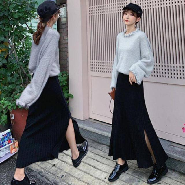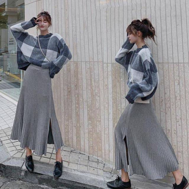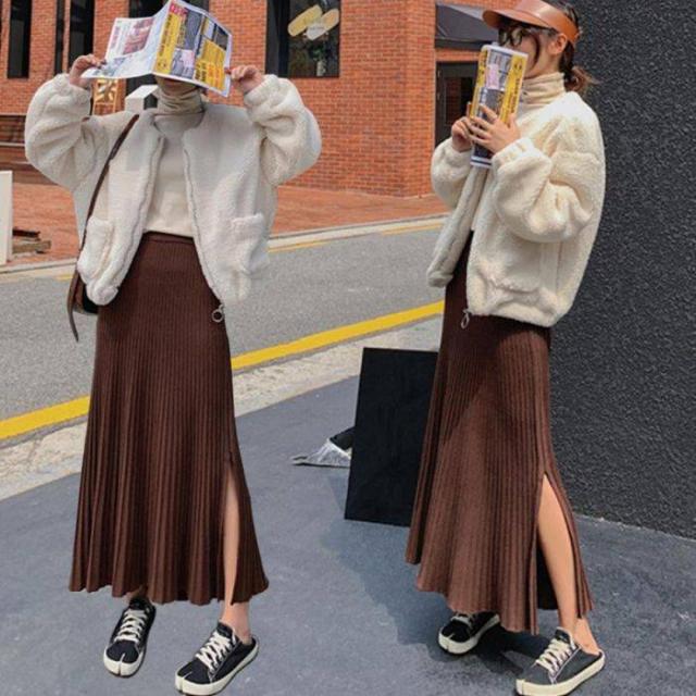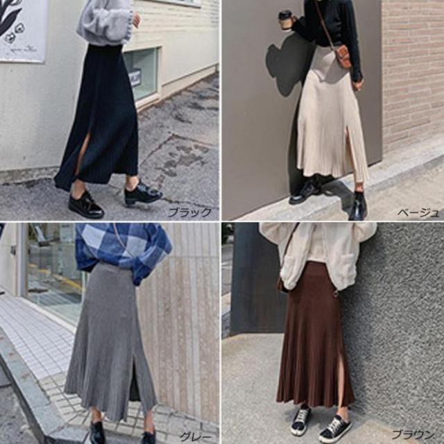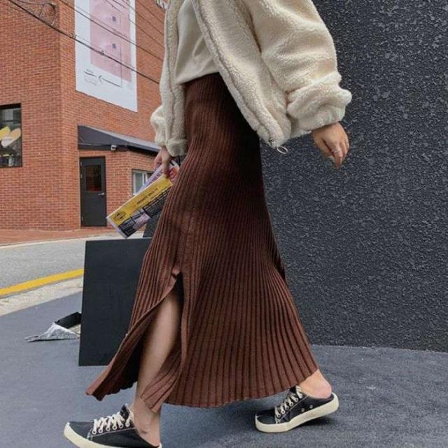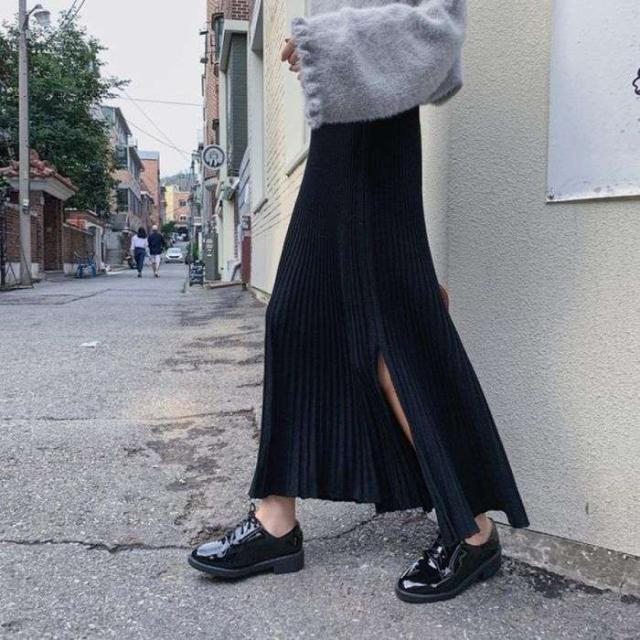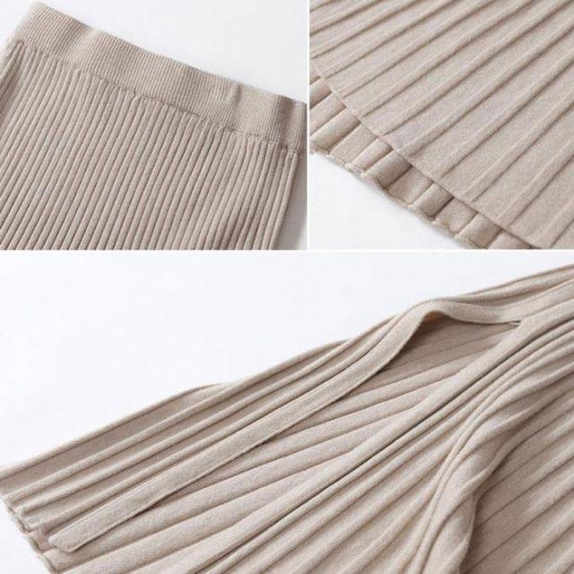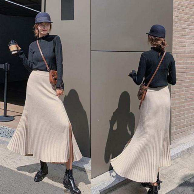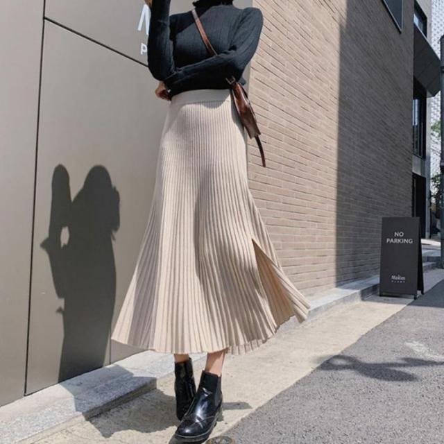 裾に向かって優雅に広がるニットプリーツスカート